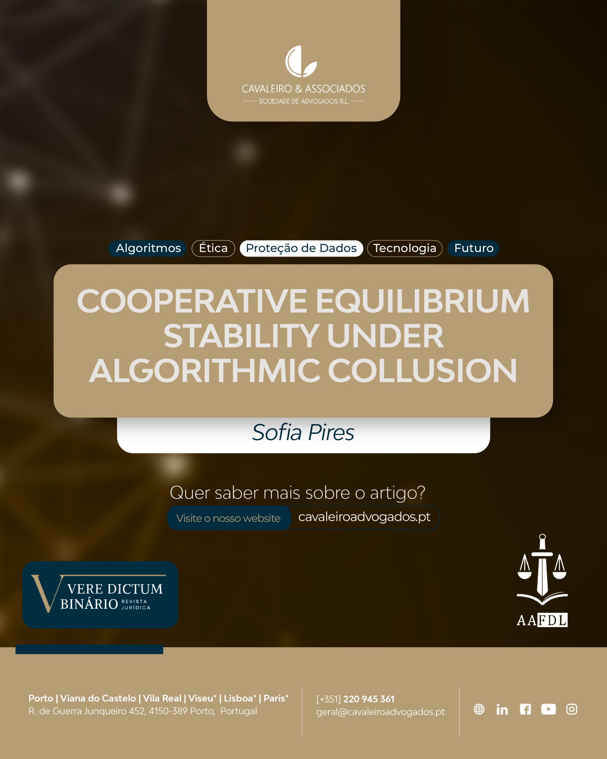 No mais recente artigo publicado na Vere Dictum Binário, a investigadora Sofia Pires analisa a estabilidade dos equilíbrios cooperativos em mercados digitais sob colusão algorítmica — uma reflexão relevante e atual sobre as ameaças que os algoritmos podem representar para a concorrência saudável.
